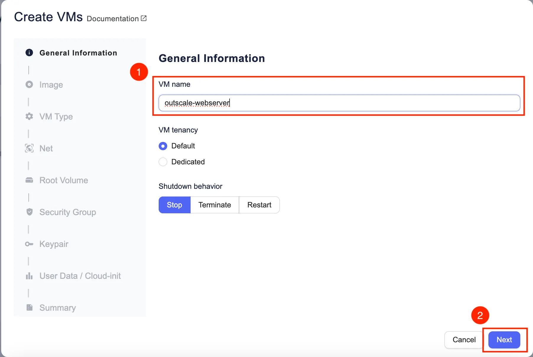 - Choisir l’image ubuntu-22.04 qui a comme propriétaire Outscale