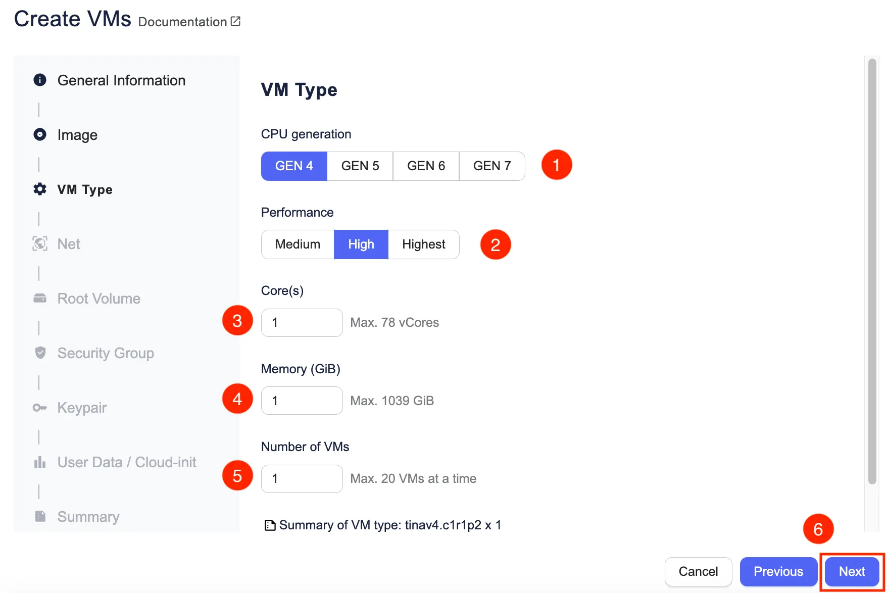 - High : Haute capacité de calcul sur tous les vCPU de la VM. Cette valeur s’applique à la plupart des cas et offre des performances variables dans le temps.