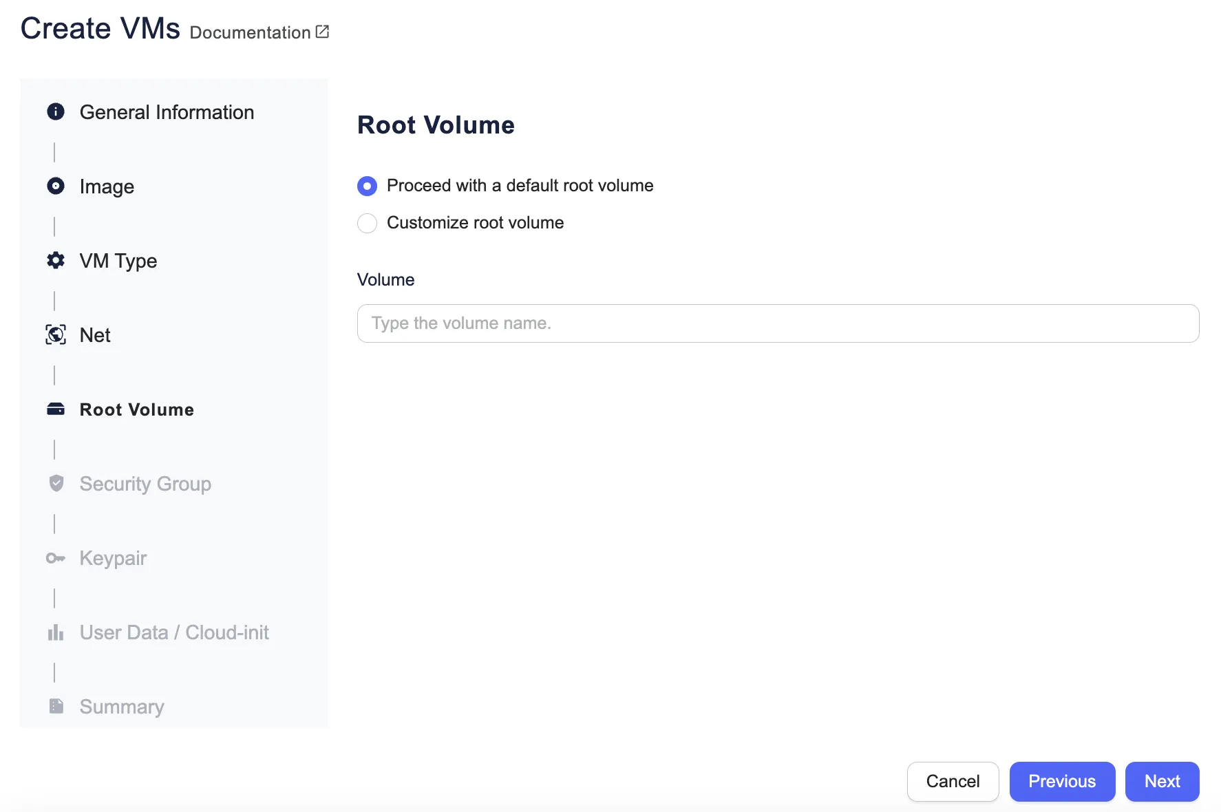 - (optionnel) Dans le champ Nom du volume, tapez un nom pour votre volume système.
