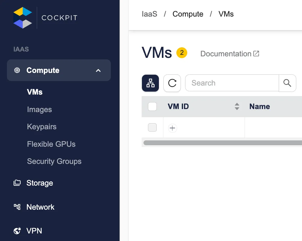 - Ouvrir un nouveau dashboard, dans Puissance de calcul cliquez VMs