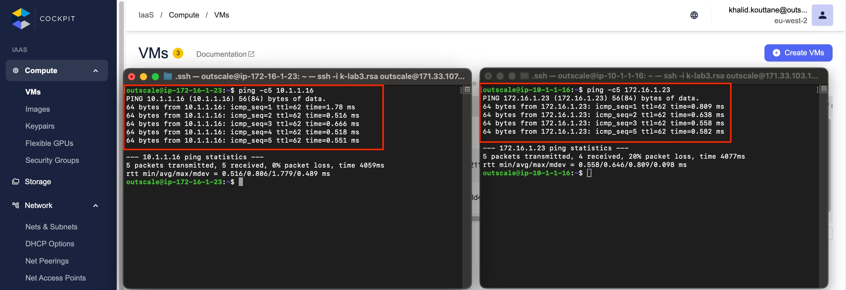 Section intitulée « Test du Ping entre les instances. »Après quelques secondes, refaire le ping entre les deux instances.